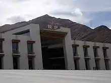- (en) Urumqui delegation visit Lhasa : « Lhasa Train Station, founded in 2006, is a main part of the Qinghai-Tibet Railway project. It lies in Liuwu New Area, 1 kilometer to the south of the main river and 5 kilometers southwest of the Potala Palace. »