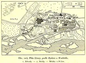 - (en) Lhasa map: 1980 (carte de Lhassa en 1980) : « In 1980, the Lhasa valley is filled with patches of new structures, many of which are administrative and technical facilities. Modern roads are being built or planned. The Lingkor, although somewhat changed, is still used for circumanbulation of the old city boundary. The old city gate, in the form of a Buddhist stupa, has disappeared, like several other religious sites. By 1985, the basic road network in Lhasa has been completed. »