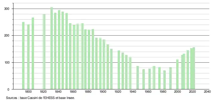 - Fiches Insee - Populations légales de la commune pour les années 2006, 2007, 2008, 2009, 2010, 2011, 2012, 2013, 2014, 2015, 2016, 2017, 2018, 2019, 2020 et 2021.