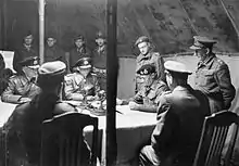 - trois armées allemandes qui étaient à l'Allemagne du Nord-ouest à ce temps capitulaient de cette façon. Ils signent la capitulation au matin (8:00) du 4 mai sur le Timeloberg près de Wendisch Evern. Source: Mémoires de Montgomery, p. 380