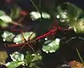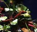 - Les mâles ont le corps entièrement rouge ou orange foncé, y compris les yeux, les pattes et les nervures des ailes. Les femelles sont généralement d'un brun moyen ou foncé avec de fines rayures jaunes et les pattes sont rougeâtres.