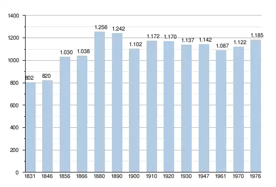 En tenant compte des anciennes communes entraînées dans la fusion de communes de 1977, on peut dresser l'évolution suivante: