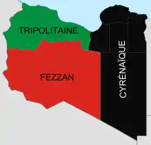 Après la chute du colonel Kadhafi, la Libye est marquée par la disparition de tout pouvoir central fort : les nouvelles autorités ne parviennent pas à s'imposer face aux milices armées formées pendant la révolution. Les milices sont de trois types : très souvent tribales ou locales (Misrata, Zintan, etc.), parfois religieuses (milices salafistes de Benghazi, etc.), ou personnelles (milice privée du général rebelle Haftar, etc.)[77]. La Libye est parcourue par une guerre entre clans régionaux et tribaux qui dessinerait trois ensembles plus importants aux pouvoirs eux-mêmes parcellaires : le « Grand Sud », la Cyrénaïque et la Tripolitaine.