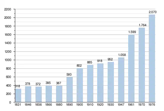 - Sources : INS, Rem. : 1831 jusqu'en 1970 = recensements, 1976 = nombre d'habitants au 31 décembre.