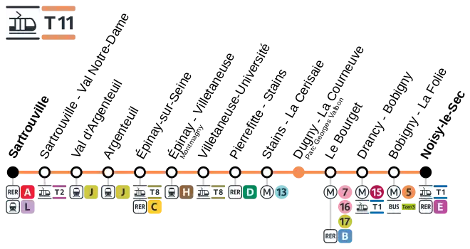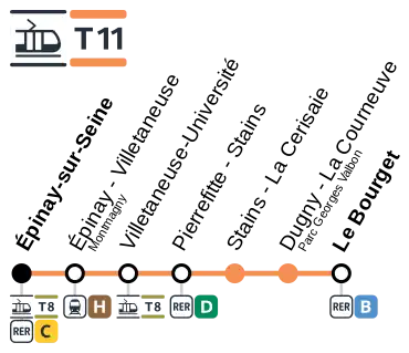 | Communes desservies | 9 Épinay-sur-Seine Montmagny Villetaneuse Pierrefitte-sur-Seine Stains Dugny La Courneuve Le Bourget Drancy |