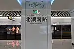 | 北湖南路站 (Běihúnán lù zhàn) | Roen Namz Bwzhuz | Rue Beihu sud (zh) | ![]() |