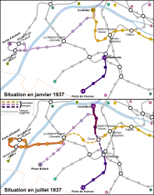 - : prolongement à l'est jusqu'à Porte de Charenton pour l'Exposition coloniale de 1931