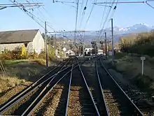 Ancienne limite de l'électrification au nord de la gare de Grenoble-Universités-Gières.