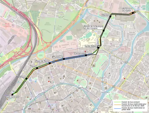 Elle relie la gare centrale de Strasbourg au Parlement européen situé dans le quartier du Wacken. La ligne est mise en service le .