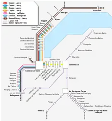 | Lignes | 6 lignes (Type S-Bahn CFF, TER SNCF)