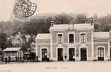 La ville de Saint-Saëns, située à une trentaine de kilomètres au nord-est de Rouen, avait été tenue à l'écart de la transversale Amiens - Rouen mise en service le 8 avril 1867 par la Compagnie des chemins de fer du Nord[1]. Dix kilomètres séparaient Saint-Saëns de la station la plus proche, Montérolier-Buchy, et seules, quelques rares voitures publiques permettaient aux habitants de la commune d'accéder au chemin de fer[2]. L'absence de voie ferrée nuisait à l'activité économique de la cité ; les filatures de coton et les ateliers de traitement des cuirs (tanneries et corroieries) rencontraient des difficultés d'approvisionnement et d'écoulement de leurs productions[3].