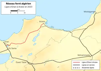 Le projet de reconstruction d'une ligne ferroviaire entre Oran et Arzew date des années 1980. Arrêtés pendant deux décennies, les travaux ont repris en 2003 pour s'achever en 2017[2].