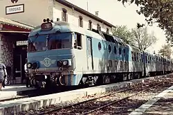 - Le 31 mai 1994 entre Achladokambos et Eléochori dans l'Arcadie un autorail a affronté des problèmes sur son moteur qui a provoqué un manque total du système de freinage. Le personnel de bord et les voyageurs sont arrivés à abandonner le train avant qu'il ne déraille sur une courbe à 100 km/h[17]. L'autorail a été retiré à la voie et transporté en gare de Tripoli en attendant d'être vendu pour la ferraille.