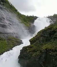 - Kjosfoss (669 m d'altitude) : Le train s'arrête durant l'été pour laisser les passagers descendre du train et admirer la chute d'eau Kjosfossen. Il n'y a aucun moyen d'accès à la plateforme pour admirer la cascade autre que le train.