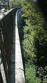 • le second comporte une section en pierre de près de 130 m avec six arches suivie par un tablier métallique biais d'une quinzaine de mètres sur la route D5[9],[10].