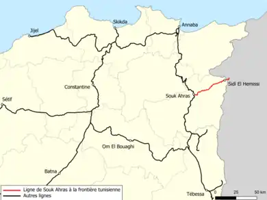 | Ligne de Souk Ahras à la frontière tunisienne | ||
