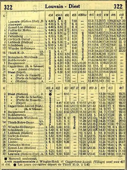 | Tableaux horaires[note 1] | 322 (1931) | |