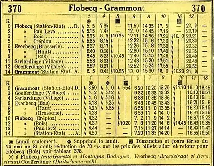 - Horaire des trains du au , Société nationale des chemins de fer belges (SNCB) (lire en ligne sur le Grenier Ferroviaire)