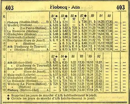 - Horaire des trains du au , Société nationale des chemins de fer belges (SNCB) (lire en ligne sur le Grenier Ferroviaire)