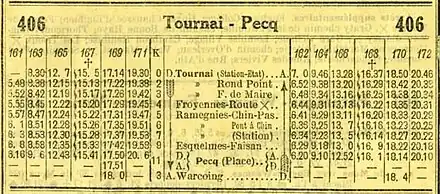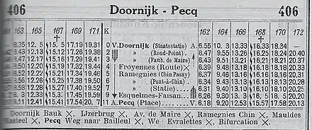 Vers la ligne 372 Courtrai - Pecq est fusionnée avec la ligne 406, celle-ci étant prolongée jusqu'à la gare de Courtrai (Doorniksewijk)[réf. nécessaire].