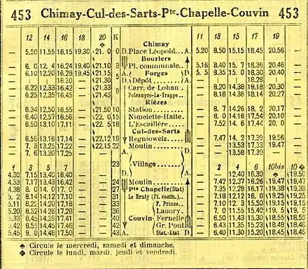 Tableaux horaires[note 1] 453 (1931)