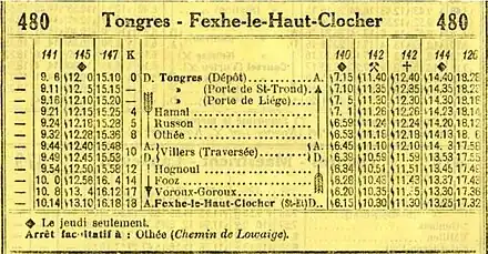 | Tableaux horaires[note 1] | 480 (1931) | |