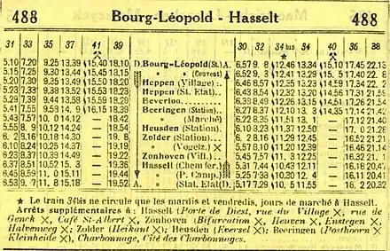 - Horaire des trains du au , Société nationale des chemins de fer belges (SNCB) (lire en ligne sur le Grenier Ferroviaire)