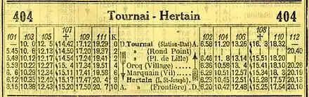 - 404A en , numéro et tableau partagés à partir du avec la ligne 404B Tournai Station-État - Tournai Grand-Place[9].