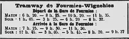 - « [Tramway de Fourmies à Wignehies] », Journal de Fourmies, no 565, , p. 2 (lire en ligne)