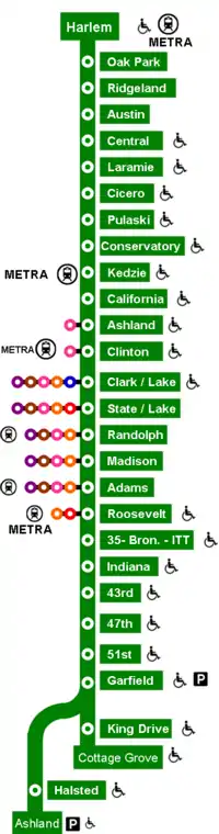 - « Lines -> Green Line », sur chicago-l.org (consulté le ).