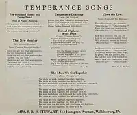 Le mouvement de la tempérance est un ensemble d'associations, de ligues religieuses ou non, dont la mission est de s'opposer à la consommation d'alcool. Son fondement est souvent d'ordre religieux ou moral : la plupart des mouvements du XXe siècle en Occident sont également associés au mouvement féministe[1], l'alcool étant souvent la cause de violences conjugales et absorbant une part substantielle des revenus des familles à bas revenus.