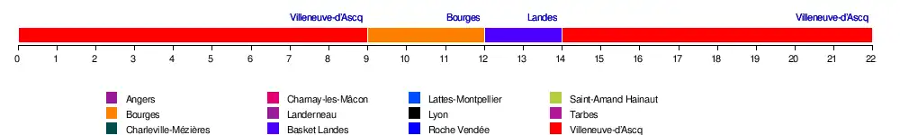 | Lattes-Montpellier | 2 | 8 | 5 | 4 | 4 | 4 | 4 | 4 | 3 | 4 | 4 | 4 | 5 | 5 | 5 | 5 | 5 | 5 | 5 | 4 | 4 | 4 | 22 | ||