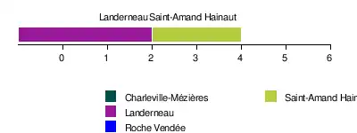 | Charleville-Mézières | 4 | 3 | 2 | 5 | 5 | 5 | 5-1 | 6-1 | 8-1 | 8-1 | 8-1 | 9-1 | 9-1 | 8 | 7 | 7 | 8 | 9 | 9 | 9 | 9 | 9 | 15 | 7 | |