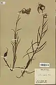 - « un spécimen séché de Lis qui maintenant porte son nom. Sa collection, qui a été déposée dans l'Herbier du Jardin des Plantes, n'est toujours pas organisée et décrite; mais grâce à son amabilité et à celle du professeur Duchartre, j'ai pu passer en revue tous ses lis et j'ai eu la chance d'en trouver plusieurs dont l'existence en Chine était jusqu'alors inconnue. M. Duchartre m'indiqua les particularités de l'espèce en question, qu'il ne voulut pas d'abord décrire à partir d'un seul spécimen, de surcroît assez imparfait. Comme, cependant, un examen attentif montre qu'il ne peut guère être confondu ou uni à aucune autre espèce, je lui demandais de le faire et de la nommer d'après son découvreur. Un dessin soigné de la plante a été réalisé par M. Faquet...