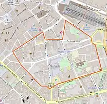 Reporté sur un plan actuel, le quartier était compris dans un périmètre entre la porte de Paris, la rue du Réduit au sud de l’Hôtel de Ville, la Noble Tour, les rues Paul Duez, de Tournai, Charles-Saint-Venant, Gustave-Delory, de Paris, du Molinel, Barbier Maes, Ovigneur, Lydéric derrière la caserne Vandamme.