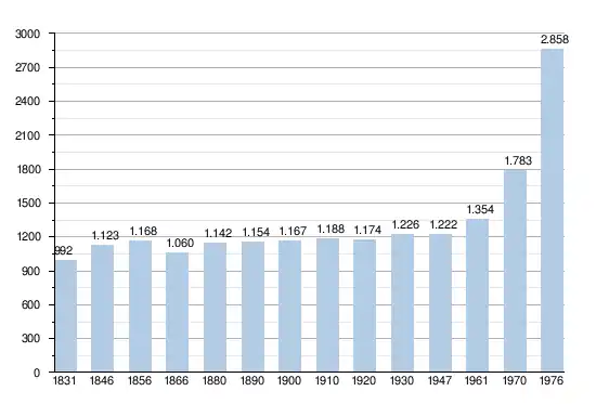 - Sources:INS, Rem:1831 jusqu'en 1970=recensements, 1976= nombre d'habitants au 31 décembre
