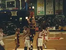 Le Cercle Saint-Pierre frappe encore plus fort lors de la saison 1989-1990. Sur le marché des transferts, le club recrute le meneur international Valéry Demory[97] et conserve par ailleurs la quasi-totalité de l'effectif. Michel Gomez et ses hommes font un parcours brillant en saison régulière (33 victoires et 1 défaite, c'est un record)[98]. En play-offs[99], le CSP sort Saint-Quentin en quart (aller : 99-78, retour : 106-83) puis Mulhouse en demie (aller : 109-97, retour : 83-79) et se retrouve en finale face à Antibes. Limoges a besoin de trois manches pour battre Antibes (aller : 111-96, retour : 96-100, belle : 103-89). Cette équipe remporte également le tournoi des As en finale contre Cholet. En Championnat d'Europe des clubs, le CSP se hisse au final-four de Saragosse en se faisant éliminer par le grand Split lors de la demi-finale. Le Limoges CSP termine troisième du final-four en battant l'Aris Salonique.