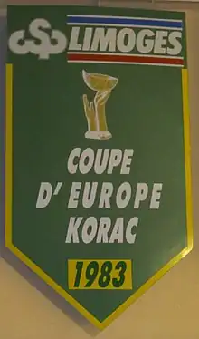 Lors de la préparation de la saison 1981-1982, pendant que le palais des sports de Beaublanc s'érige peu à peu, l'équipe technique du CSP construit un collectif capable de relever un double défi, celui de championnat national, mais aussi le défi européen de la Coupe Korać, pour laquelle le CSP s'est qualifié la saison précédente. Trois recrues viennent renforcer l'équipe : le meneur français Jean-Michel Sénégal[45], Edward Murphy[46] et le pivot américain Irvin Kiffin[47]. Dès la saison lancée, le CSP domine les favoris de la Nationale I (actuelle ProA). Beaublanc est inauguré le [48] lors du match Limoges CSP - ASVEL. Le Cercle Saint-Pierre termine deuxième de la saison 1981-1982, derrière Le Mans. En Coupe Korać, Limoges fait un parcours de qualité, qui l'amène en finale. C'est ainsi que le , à Padoue, en finale contre un club croate, le KK Šibenka, Limoges offre à la France la première victoire (90-84) d'une équipe nationale dans une compétition européenne[49]. Dans sa lancée, le CSP, dont le parcours en coupe l'amène aussi jusqu'en finale, remporte son premier titre national, la Coupe de la Fédération en dominant l'ASVEL. Le match de la finale se joue à Reims, dans la salle René-Tys et le score de Limoges, qui gagne par 116 à 100, doit beaucoup aux 45 points de Murphy. La Coupe Korać et la Coupe de la Fédération en poche, le CSP s'affirme, à partir de la saison 1981-1982 comme le digne successeur de l'ASVEL[50].