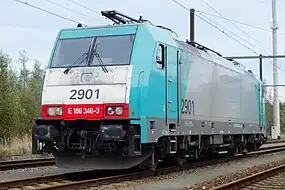 Une locomotive série 186 en livrée Lineas. | |