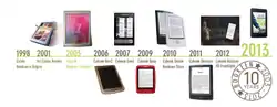 La liseuse Kindle d'Amazon, quant à elle, est commercialisée depuis . Le , Suzi LeVine, nouvelle ambassadrice américaine pour la Suisse et le Liechtenstein, prête d'ailleurs serment sur un Kindle affichant le dix-neuvième amendement de la Constitution des États-Unis[16]. Avec la liseuse Kobo de la Fnac (apparue en 2009 à Toronto[17]), il s'agit des deux principales liseuses sur le marché actuel[18].