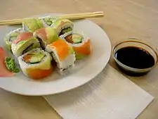 Sushis et sauce soya.