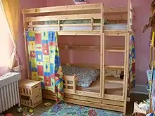 - Pour les enfants, le traditionnel lit à barreaux verticaux est suivi du lit en toile, matelassé, pliable (lit-valise ou lit-parapluie). Les lits pour enfants ou adolescents peuvent également servir de rangement ou d'espace de jeu. On retrouve différents types de lits : compacts, en hauteur, avec rangement, à demi-hauteur, combiné avec bureau. Le lit parapluie est un lit d'appoint, pliable, conçu pour aider les parents en voyage. Le lit à barreau, fixe, sécuritaire et confortable, sera lui plébiscité par les parents pour un usage quotidien[11].