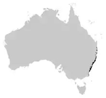Cette espèce est endémique de Nouvelle-Galles du Sud en Australie[1]. Elle se rencontre dans la bande côtière ce qui représente 45 900 km2[2].