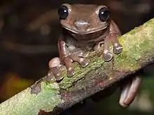 - Emeline Férard, « Une espèce inconnue de "grenouille chocolat" identifiée en Nouvelle-Guinée », sur Geo.fr, (consulté le ).