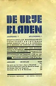 - - de l'expressionnisme au vitalisme : Het Getij (La Marée, 1916-1924), De Vrije Bladen (Les Feuilles libres, 1924, à partir de 1932 sous forme de cahiers[31] ; cessation de la publication en 1940 à cause de la guerre et reprise en 1946[32] jusqu’en 1949)[33], Forum (1932-1936)
