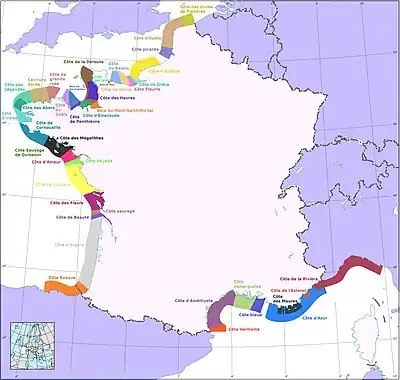 Le littoral français désigne le littoral situé en France et soumis à la loi Littoral[5] qui liste et classe les communes de métropole en plusieurs catégories[6] :