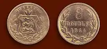 Des billets ont également été produites par l'État de Guernesey à partir de 1827, libellée en livres. En 1848, une ordonnance a été adoptée pour fixer une valeur de parité à la monnaie de Guernesey qui devrait être légal à une valeur de £ 1 1s 3d (2040 doubles). Cela a été annulé deux ans plus tard, et la monnaie française continua à circuler.