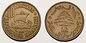 En 1924 et 1925 le Liban se met à émettre ses propres pièces et billets, puis sépare sa devise, officiellement en 1948, de celle de la Syrie. Jusqu’en 1949, la livre libanaise est liée au franc français, excepté pendant la Seconde Guerre mondiale où elle est indexée sur la livre sterling au taux de 1 £ = 8,83 LL[1].