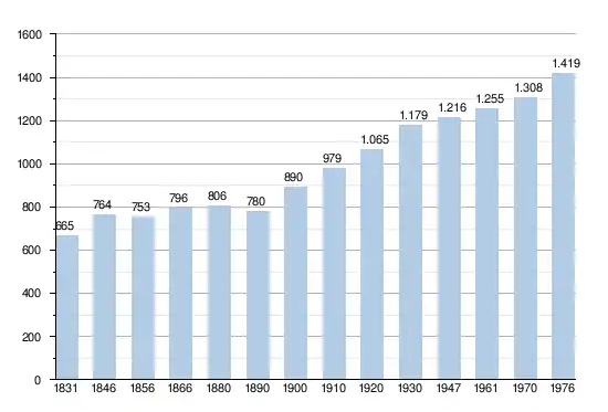 - Sources : INS, Rem. : 1831 jusqu'en 1970 = recensements, 1976 = nombre d'habitants au 31 décembre.