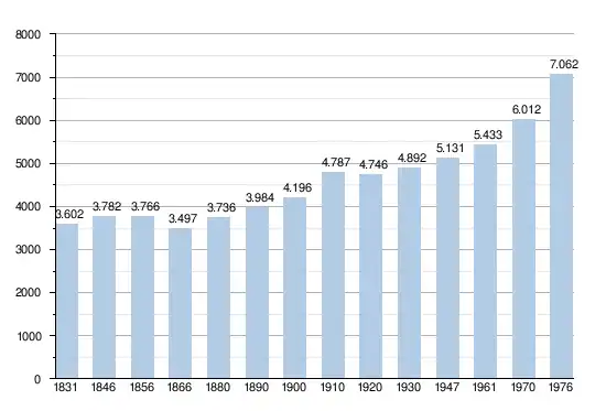 - Sources : INS, Rem. : 1831 jusqu'en 1970 = recensements, 1976 = nombre d'habitants au 31 décembre[4].